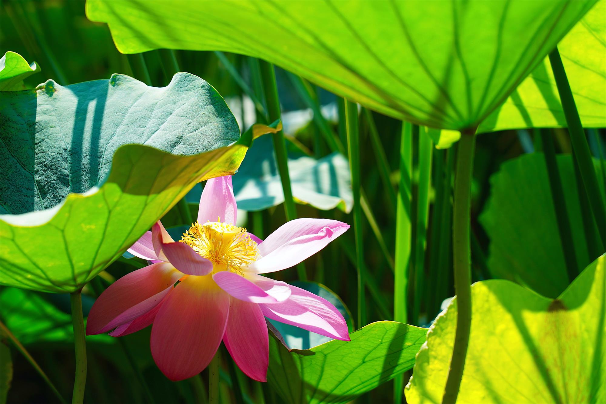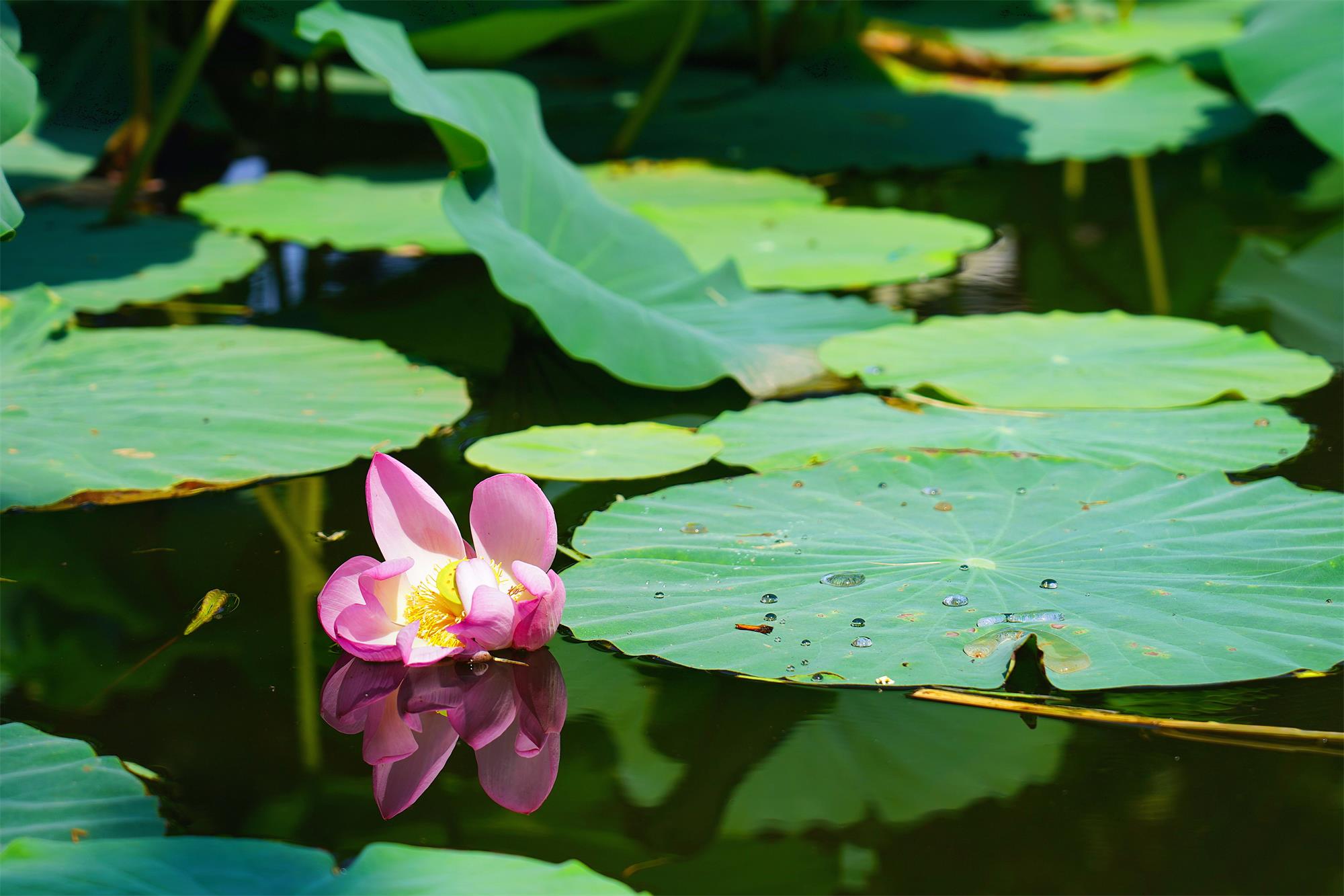 阳光透过叶隙洒下斑驳光影,水珠在荷叶上滚动,每一帧都充满生机与诗意。