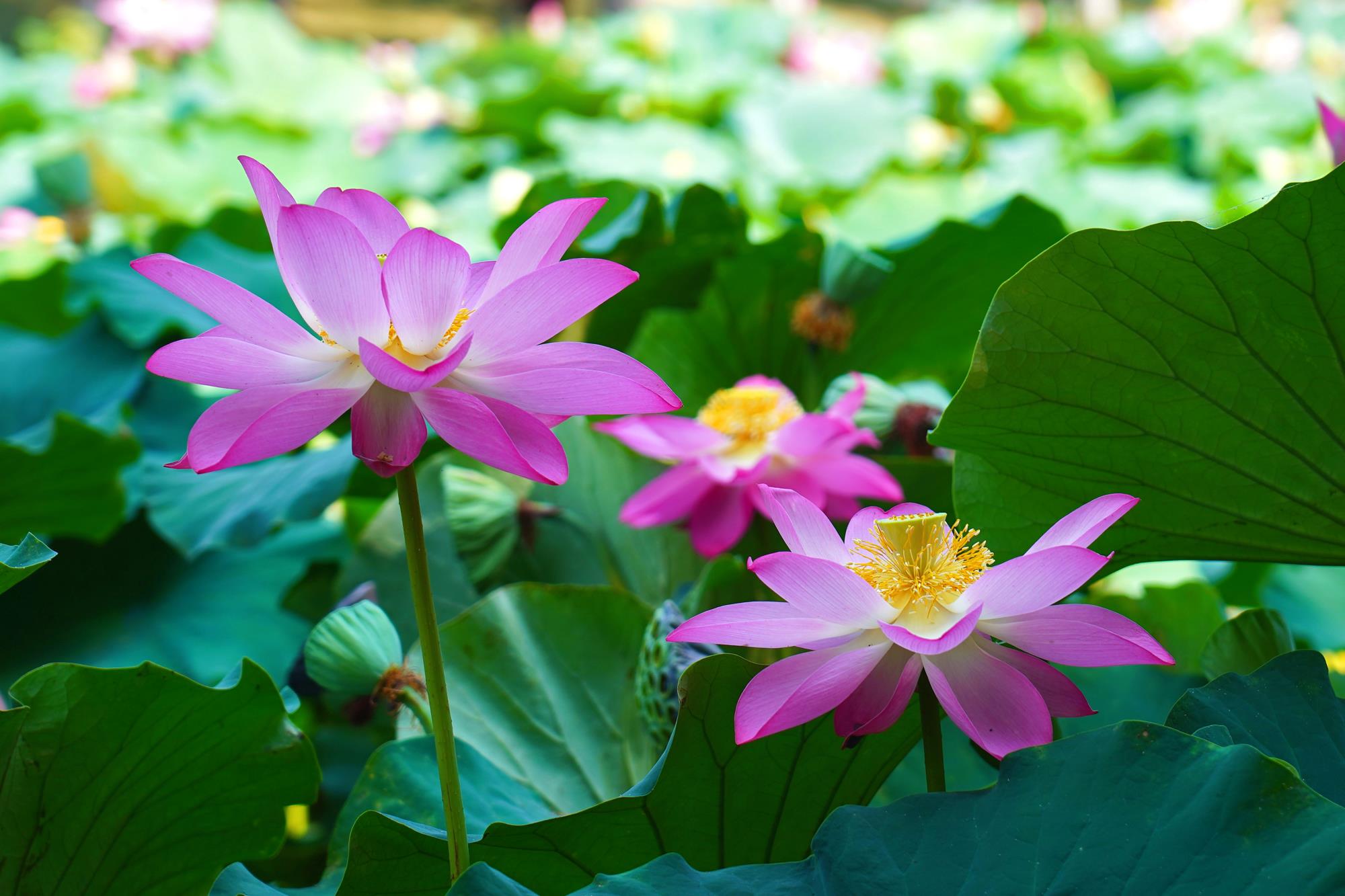 “荷”与“和”“合”谐音,“莲”与“连”同义,市民们纷纷驻足观赏、拍照留念,或是带着孩子在荷塘边感受自然之美,祈愿生活“好运连连”。这片荷塘不仅为夏日增添了清凉景致,更承载着人们对美好时光的期盼与向往。(谢刚 宁海生)
