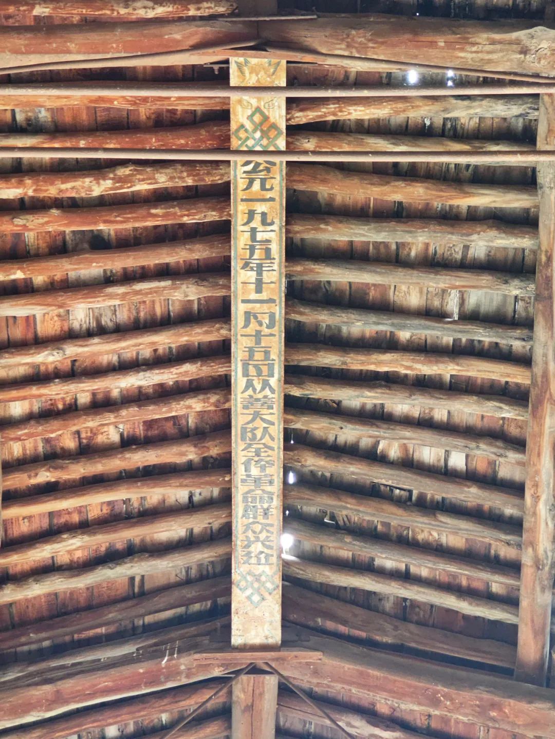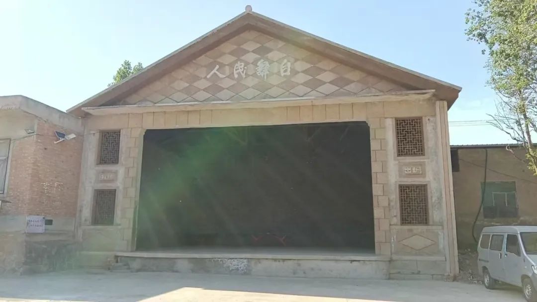 蚩尤村人民舞台坐落于盐湖区东郭镇蚩尤村村委会西 5 米处,坐南朝北,为悬山顶建筑,布瓦铺面,东西长 14.55 米,南北宽 12.7 米,高 0.75 米,占地面积 182.19 平方米。其梁架采用钢木结构人字架,共 4 缝,北山墙开台口,上部以红白石子贴饰菱形图案,题有水泥行楷 “人民舞台” 四字;台口两侧各有两个方形窗户叠加,中部书 “推陈”“出新” 黑体字,东西两檐墙后部辟方形门洞。木基层为芦箔,南山墙外壁有两根方形砖立柱加固,梁脊题 “公元一九七五年十一月十五日从善大队全体革命群众兴建”,是具有鲜明时代特征的近现代史迹及代表性建筑,为研究上世纪七十年代农村文化设施建设、群众文化需求及宣传思想提供了实物佐证。