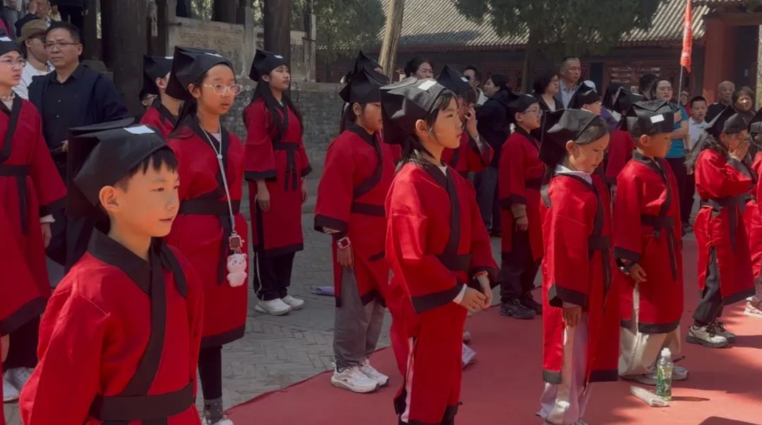 仪式感浸润:学生身着古代服饰,在老师的主持下学习传统礼仪,于崇宁殿前集体诵读《关公颂》,身临其境体验传统礼仪的魅力,领悟厚重的历史文化。