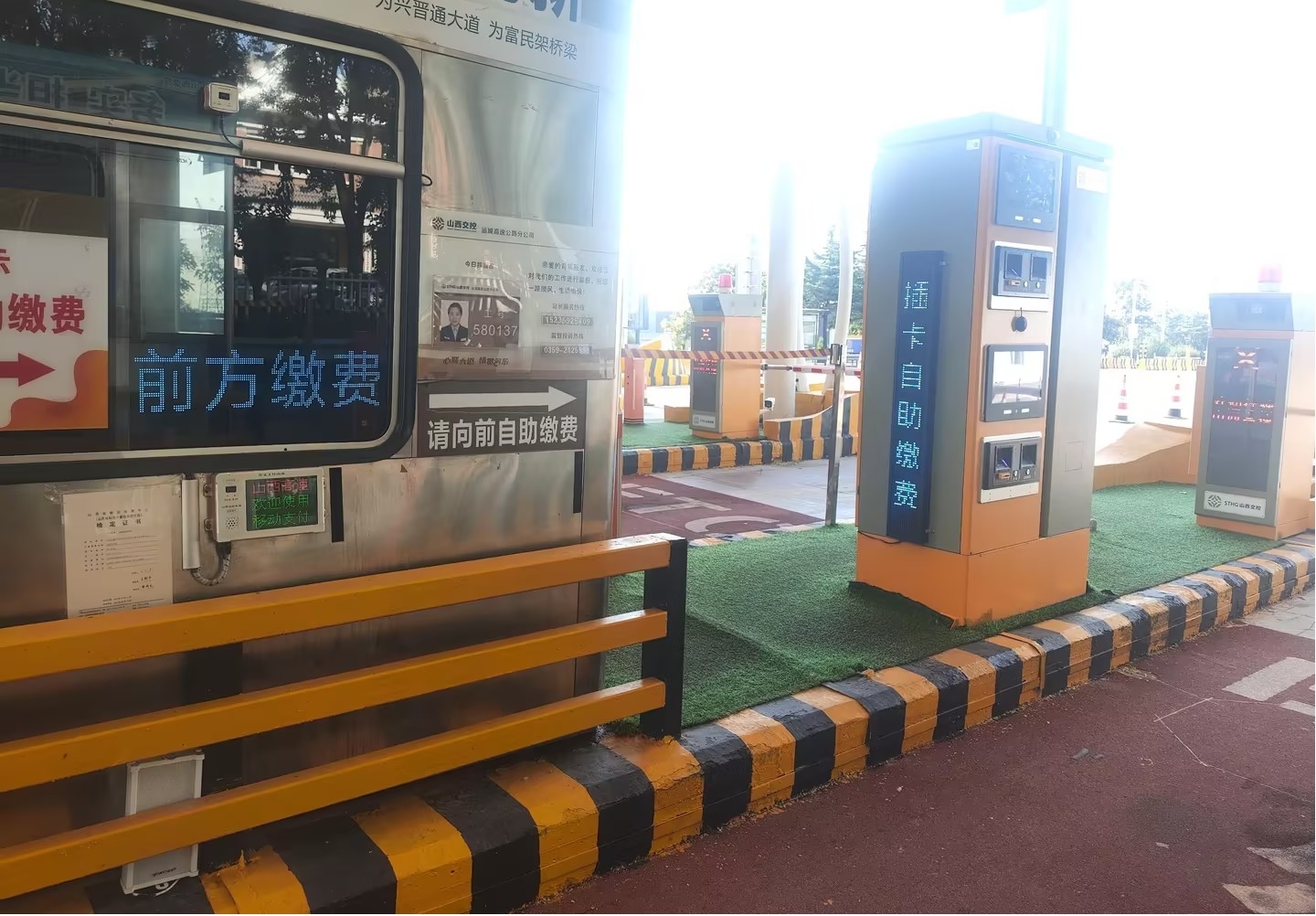 此前,部分司乘因不熟悉操作流程,导致智慧车道通行速度较慢。为解决这一问题,北垣收费站经过认真研究,在收费岗亭玻璃和自助设备上安装了LED全彩高亮显示屏,并设置语音提示功能,当车道前线圈检测到车辆时,会自动播放“向前自助领卡”和“向前自助缴费”等引导语。据统计,这些措施实施后,司乘直接自助操作成功率从82%大幅提升至95%,智慧车道通行效率显著提高。