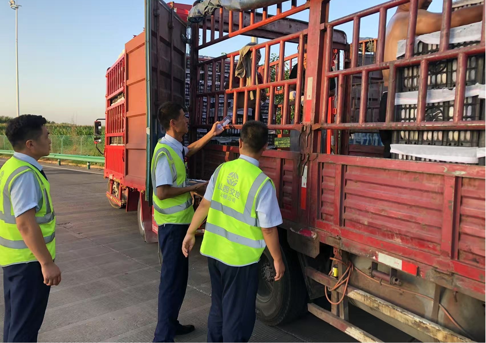 8 月 11 日下午,一辆满载新鲜水果的货车在运城公司圣天湖收费站因故障抛锚,车厢内的水果在烈日炙烤下随时可能变质,司机急得满头大汗,手足无措。