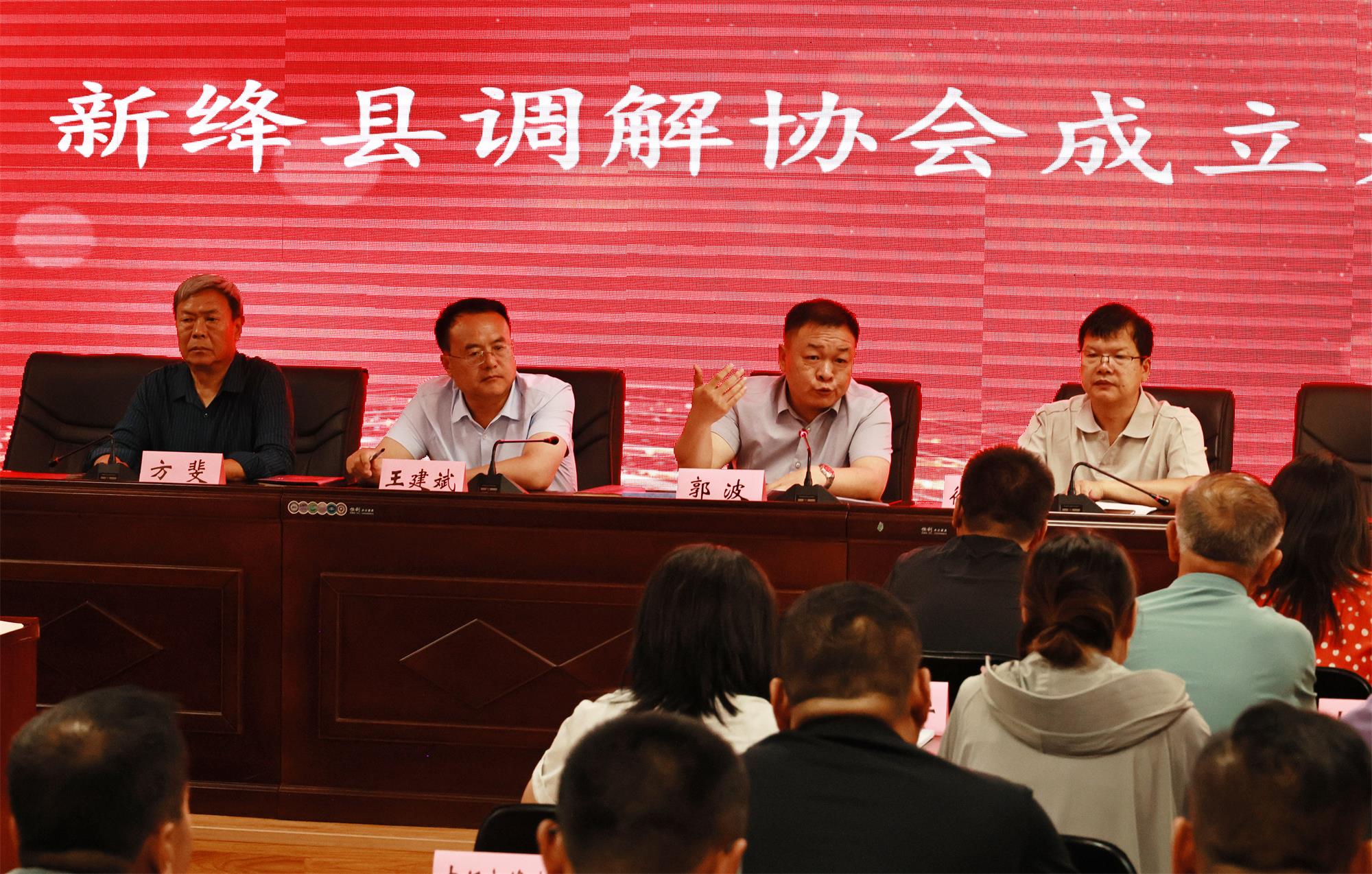 6月13日下午,新绛县司法局召开新绛县调解协会成立大会,市司法局党组书记、局长王建斌,县委常委、政法委书记郭波出席会议并讲话。