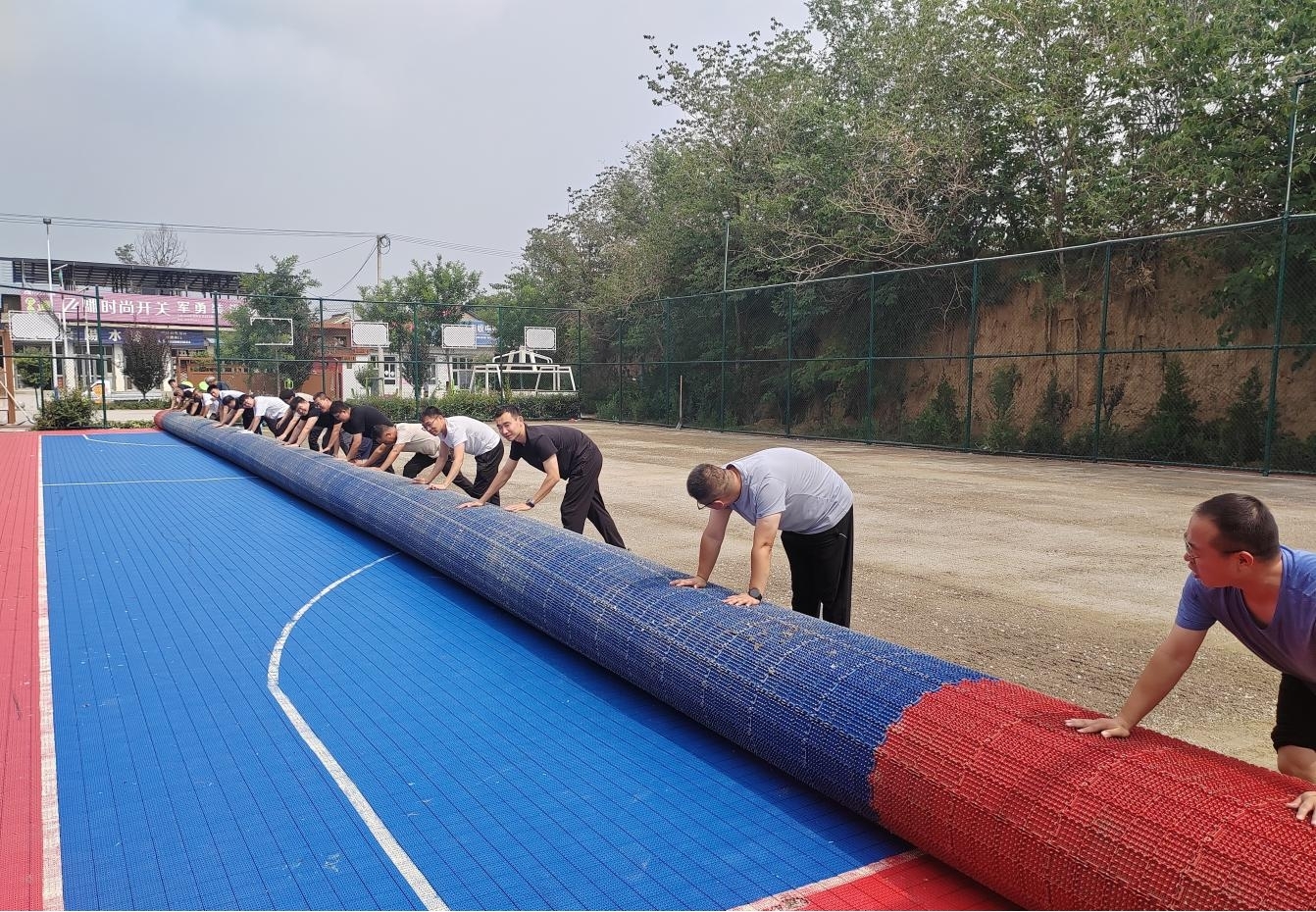 本次改造以“实用、节俭、惠民”为原则,既保留场地原有风貌,又融入现代体育功能。年轻干部负责将球场环境进行清理,篮球架、防滑垫层等设施实现重复利用。在此基础上,球场地面重新铺设沥青和防滑垫层,有效降低运动损伤风险,同时,对球场周边灯光系统进行调整优化,解决以往夜间打球“看不清、易摔跤”的问题。
