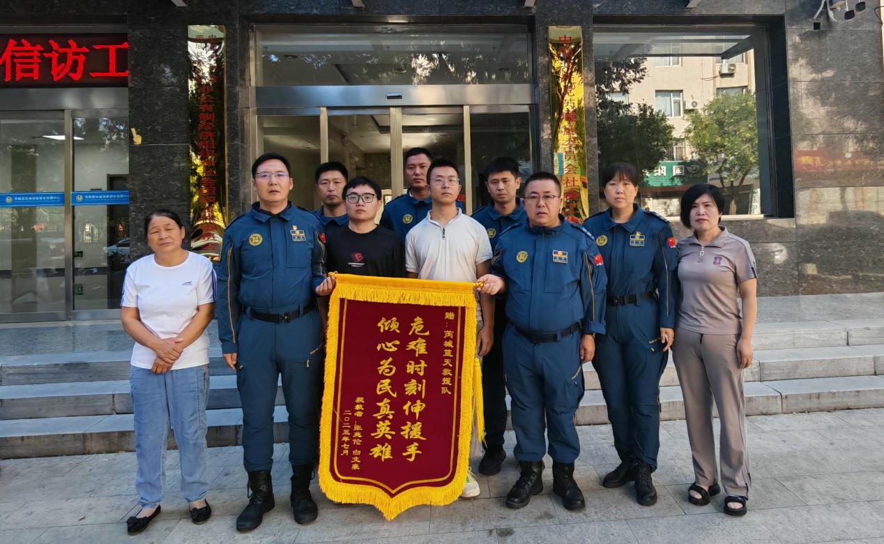 7 月 23 日,两名获救青年与家属分别向公安部门和蓝天救援队送来锦旗,含泪致谢。锦旗上 “人民警察为人民,危难之时暖人心”“危难时刻伸援手,倾心为民真英雄” 的金字,凝聚着劫后余生的全部感激。