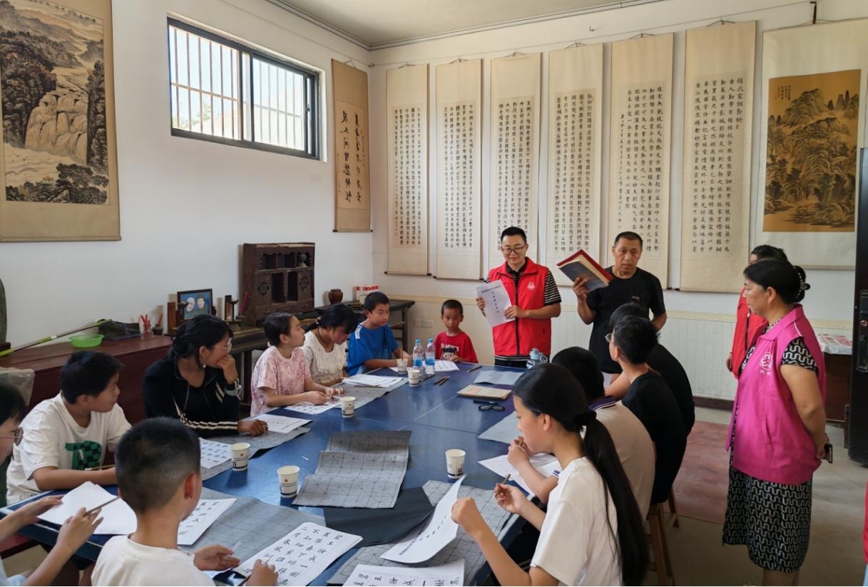 活动当天,在阳城镇党委的关怀支持下,常村村委会还同步举办了青少年暑期书法公益课堂,用笔墨书香为孩子们的假期增添一抹文化亮色。公益课堂设在常村书法爱好者家中,共吸引 10 余名青少年参与,得到村民们的一致好评。
