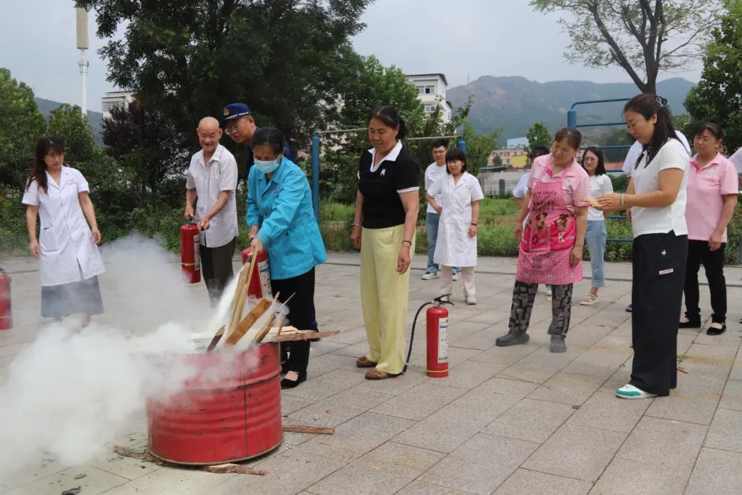 随后,宣传人员组织工作人员开展灭火演练,演示消防栓使用流程,反复强调干粉灭火器 “提、拔、握、压” 操作要领,详解消火栓部件、水带连接方法。在其指导下,工作人员及身体状况较好的老人纷纷尝试实操,宣传人员针对操作问题逐一纠正,确保掌握正确方法。