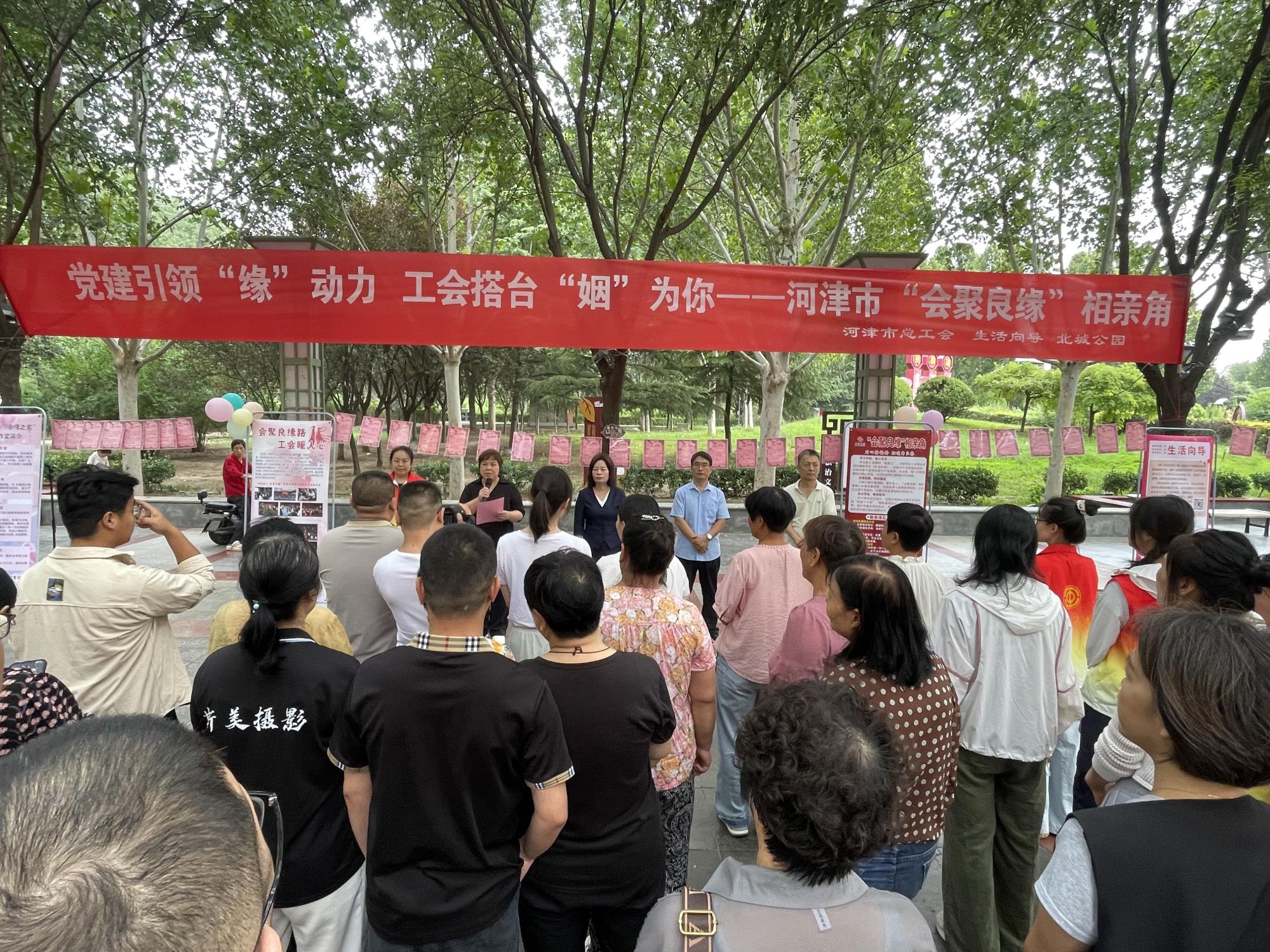 “七夕” 传统佳节将至,8 月 26 日上午,河津市总工会联合资深自媒体《生活向导》,在北城公园举办 “党建引领‘缘’动力 工会搭台‘姻’为你”—— 河津市 “会聚良缘” 相亲角启动仪式。市总工会党组书记文霞霞出席致辞,红娘志愿者、青年职工及家长共百余人齐聚,见证这一服务青年婚恋需求的民生新平台落地。