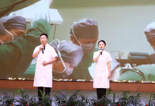 诵读中,杨丽萍、卫凡以《医心不改 使命永恒》为题,娓娓讲述了医学泰斗、中国肝胆外科之父吴孟超院士的光荣事迹,医者仁心,甘于奉献,披肝沥胆,初心不泯。两位同志诵读激情澎湃、情感真挚、“声”入人心,抒发了新时代医务人员强烈的使命担当意识和对伟大祖国的无限热爱之情。