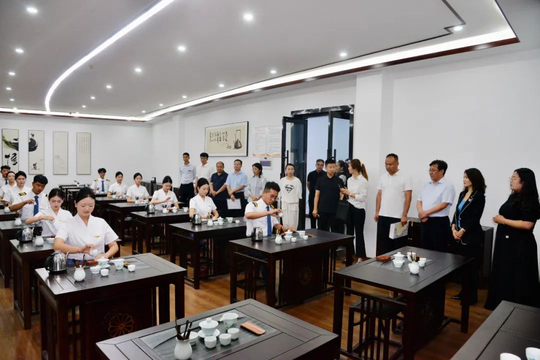 张瑞建首先对孙阿平一行的到访表示了热烈欢迎,随后双方一起参观了公共服务系安检、礼仪及茶艺实训室,美术系博雅厅、达观厅和澄泥砚大师工作室,教心系职教周学生基本功作品展及音乐系非遗经典剧目展演等。