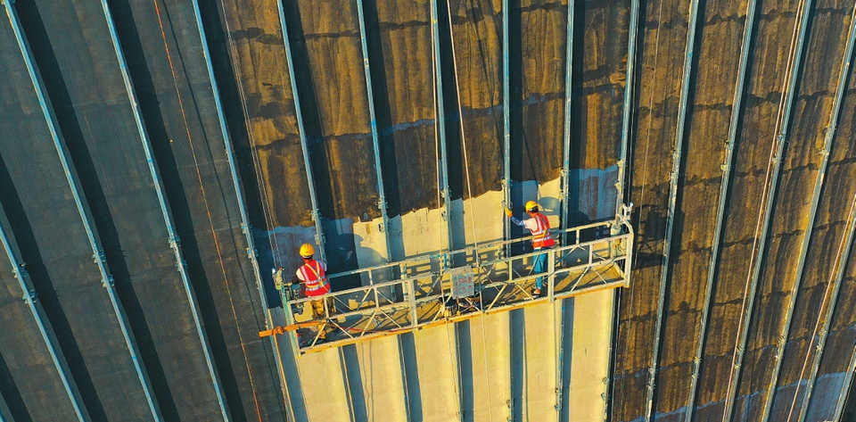 9月10日,位于夏县瑶峰镇北山底村的西阴考古博物馆建设项目现场,工人正在进行外墙装修作业。项目竣工后,该博物馆将成为集考古发掘、科学研究、文物保护、研学教育于一体的大型综合性考古研究机构。