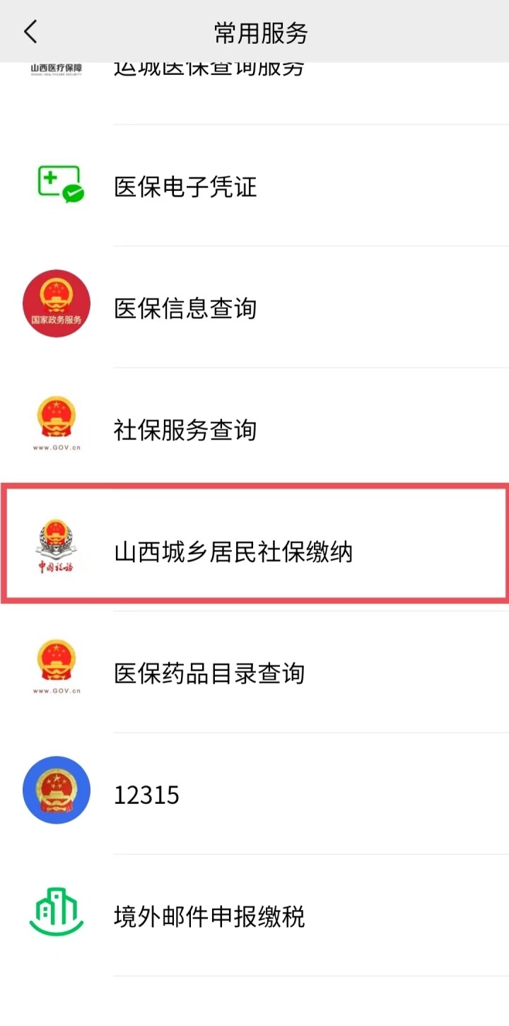 进入【市民中心】(将城市定位为"运城")—【社保】—【社保缴费】—【山西社保缴费】—【城乡居民医疗保险】进行缴费。