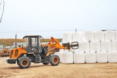 稷山县飞云秸秆综合利用专业合作社工人正在运送打包好的饲料包。