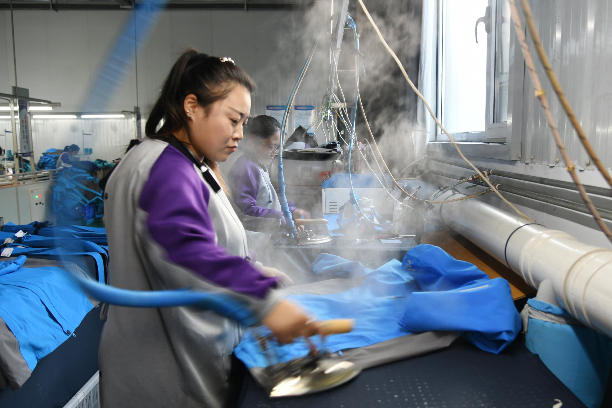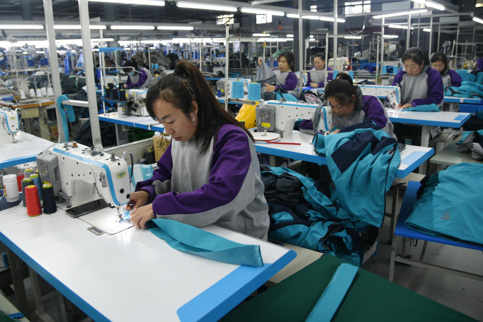 11月18日,山西莘比默克制衣有限公司开启“赶工”模式,加工车间工人铆足干劲忙生产赶订单,呈现出一派热闹的生产景象。