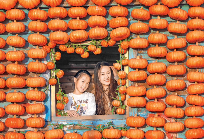 11月23日,游客在“南瓜节”上打卡。