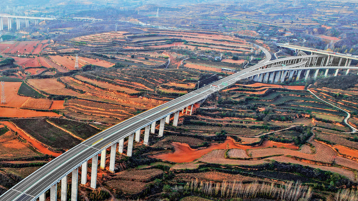 11月24日拍摄的垣渑高速公路垣曲段。“十四五”期间,我市道路建设突飞猛进,如今菏宝、垣渑两条高速公路从垣曲穿过,促进了这个山区县的经济高质量发展。 特约摄影 崔松良 摄