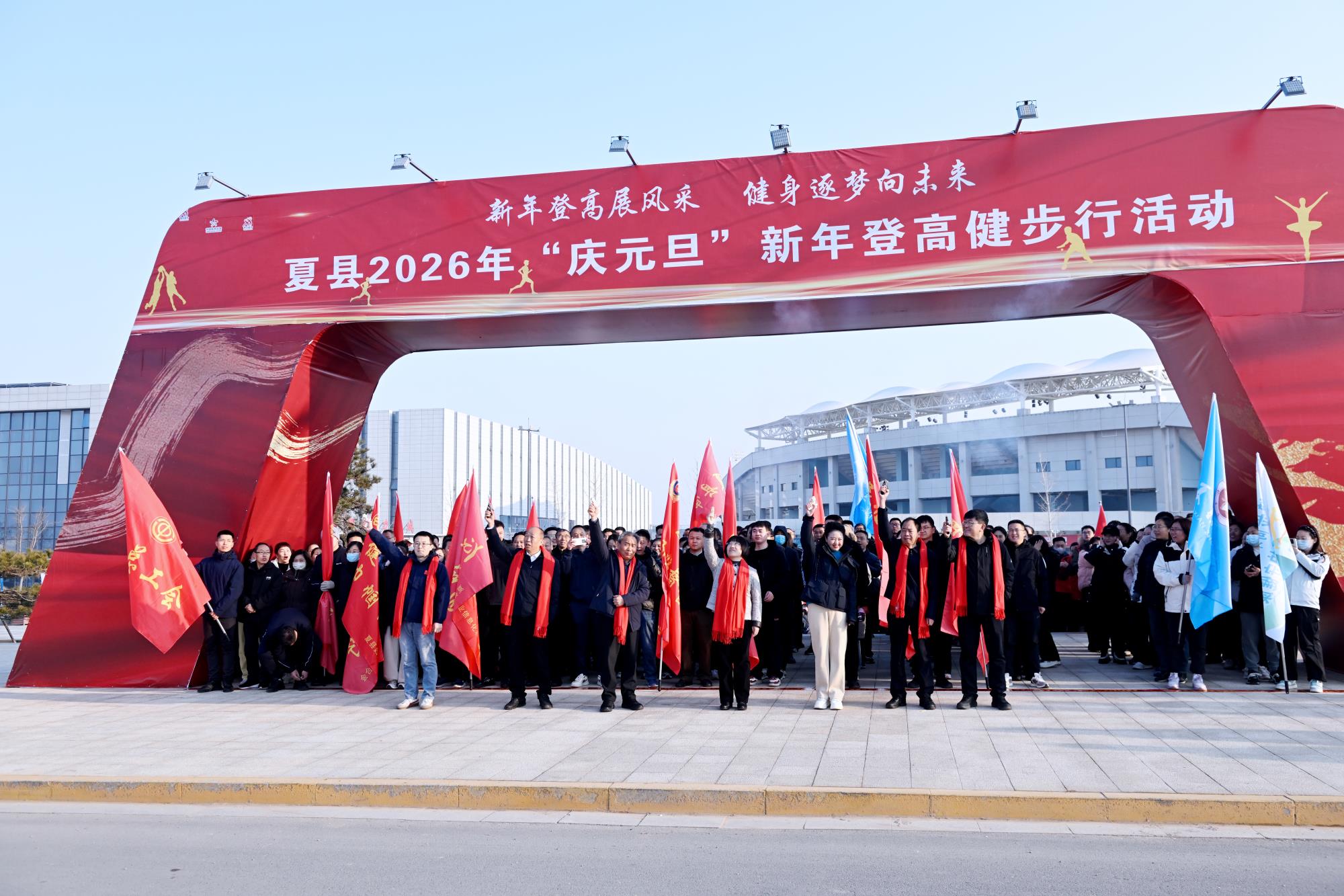 2026年元旦来临之际,为深入推动全民健身与全民健康深度融合,丰富全县广大干部职工节日文体生活,12月30日上午9时,夏县总工会在夏都体育中心举办了以“新年登高展风采 健身筑梦向未来”为主题的2026年“庆元旦”新年登高健步行活动启动仪式。来自全县41个单位的600余名职工参加健步行活动。