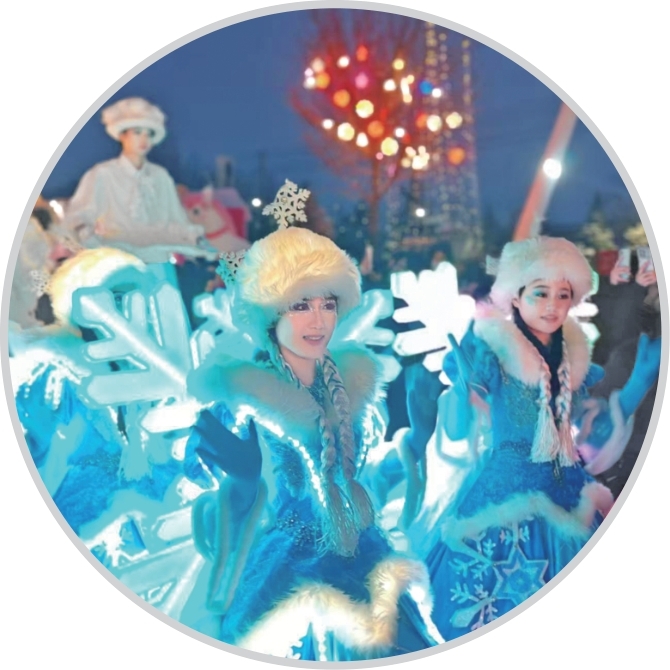 晚上举行的“灯韵千年”非遗华章巡游活动,流光焕彩承非遗,匠心传承庆华诞,看“灯韵华章”非遗花灯巡游盛大上演,剪纸、年画、糖画、皮影等八大非遗元素,化身璀璨灯饰与华美服饰。