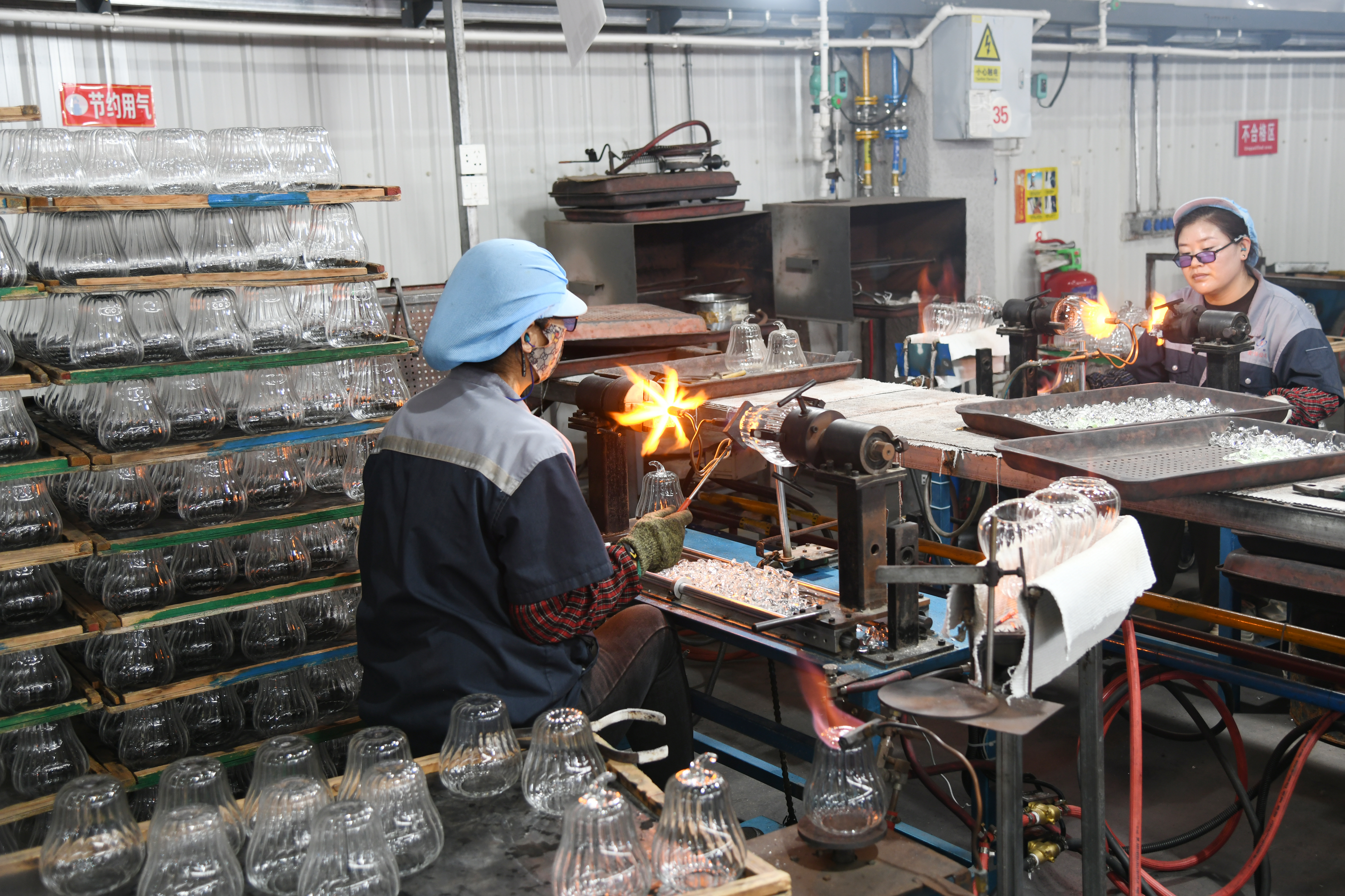 1月8日,闻喜县宏伟玻璃器皿有限公司加工车间里,工人师傅们坚守在生产一线赶订单,力争实现“开门红”。